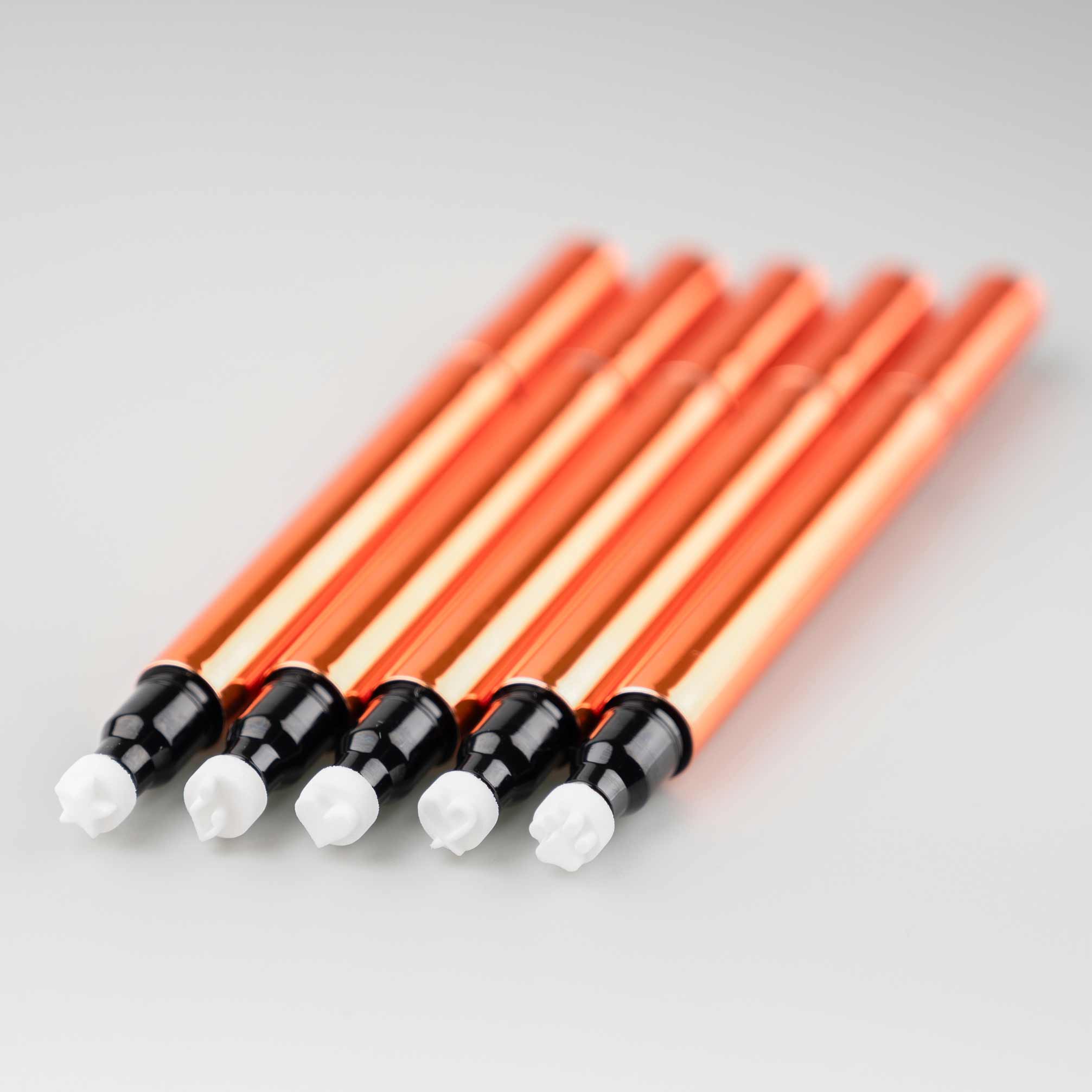 Ang stamp-package na likidong eyelineray dinisenyo upang maakit ang mga mamimili sa unang tingin. Ang makinis na mga contour ng package (124*10.4) at disenyo ng ergonomic grip ay nakakatugon sa mga pangangailangan ng mga minimalist na tatak na hinahabol ang mga malinis na linya pati na rin ang mga humahabol sa pagiging mapaglaro. Halimbawa, ang mga materyales na may mataas na pagganap na PP ay maaaring ipasadya na may mga metal na pagtatapos, mga coatings ng matte, o maliwanag na mga scheme ng kulay.